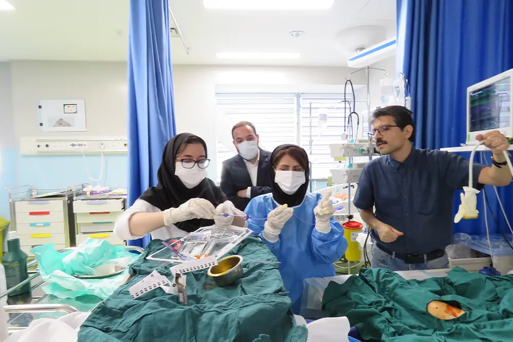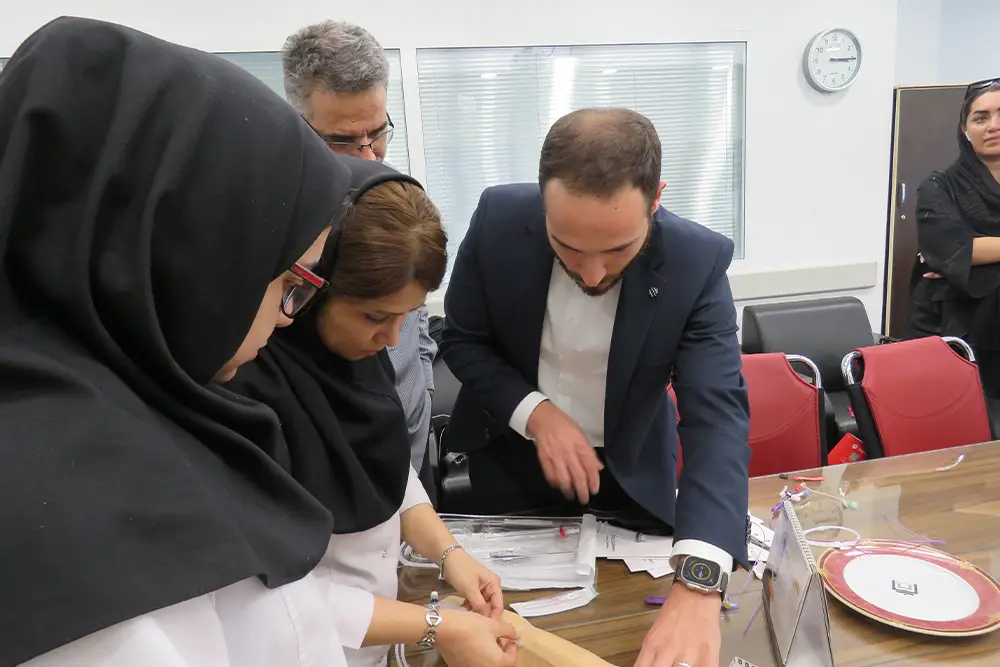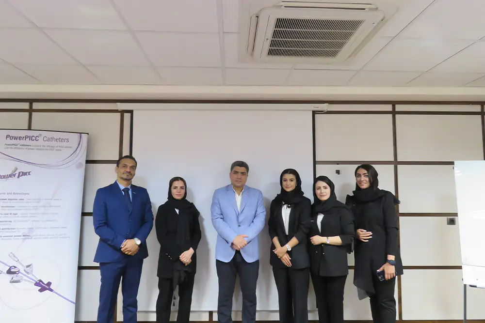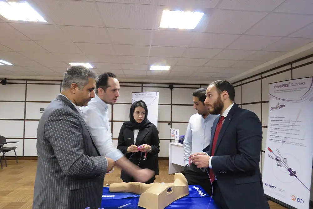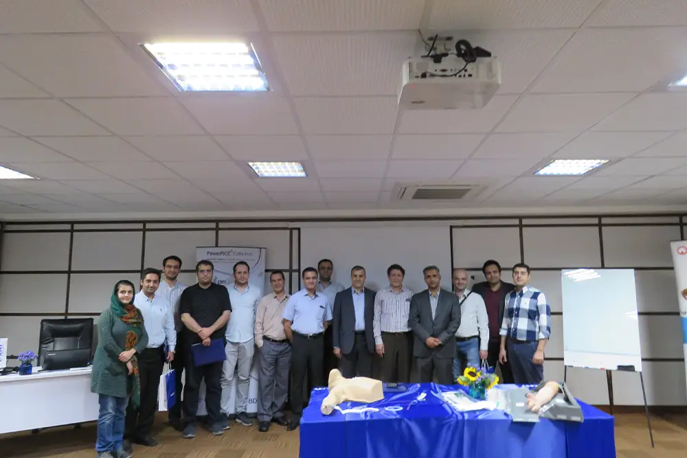 A specialized workshop on the implementation of the PICC product was successfully organized by the esteemed representative of BD Company, Mr. Hassan Saghir, hosting an experienced group of physicians and nurses from reputable hospitals including Erfan, Atieh, Kasra, and Imam Khomeini Hospital.